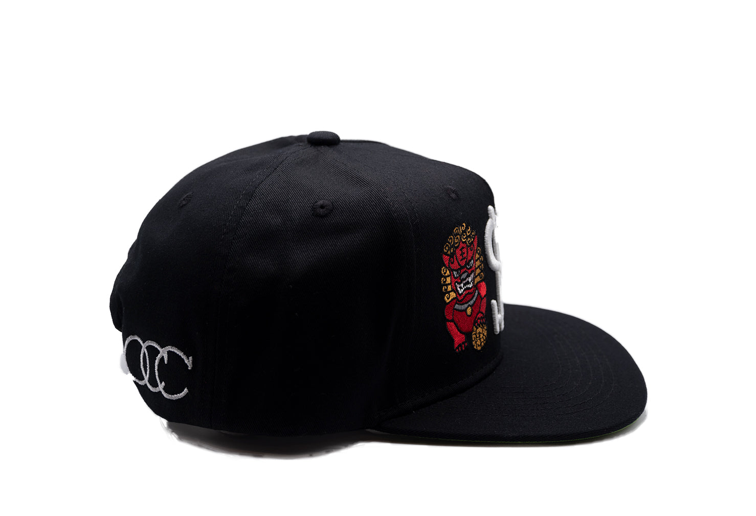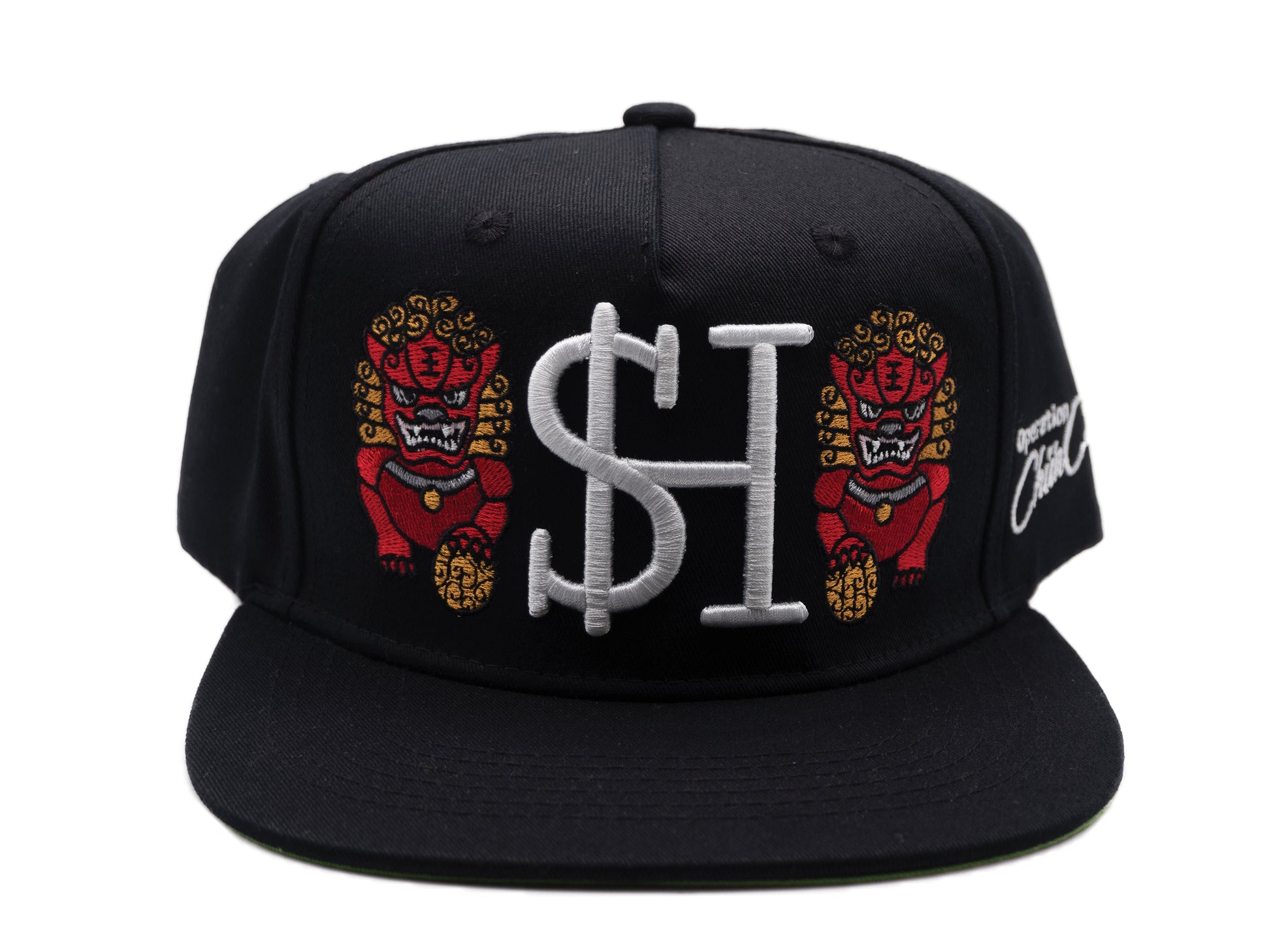 Adorn your crown with the feng shui symbol of protection, power and strength with Chinese imperial Fu Dogs (or you may think they're lions, it's either/or lol) designed in collaboration with NY-based artist, Kimberly Wong. Rock that guardian energy paired with Operation Chiin Chilla's legendary $H glyph flat brim in classic black and you will feel like the most indestructible swag human ever!